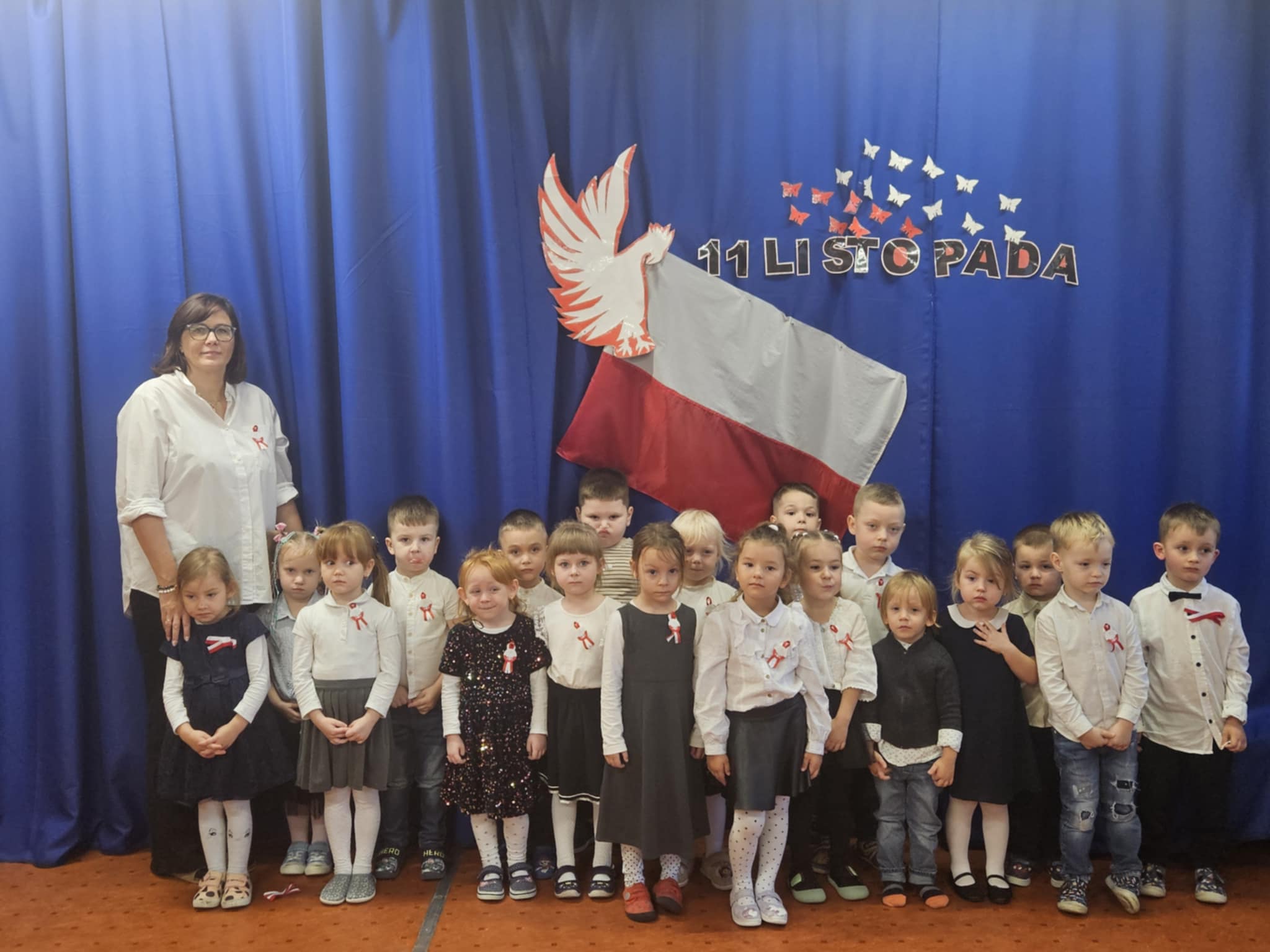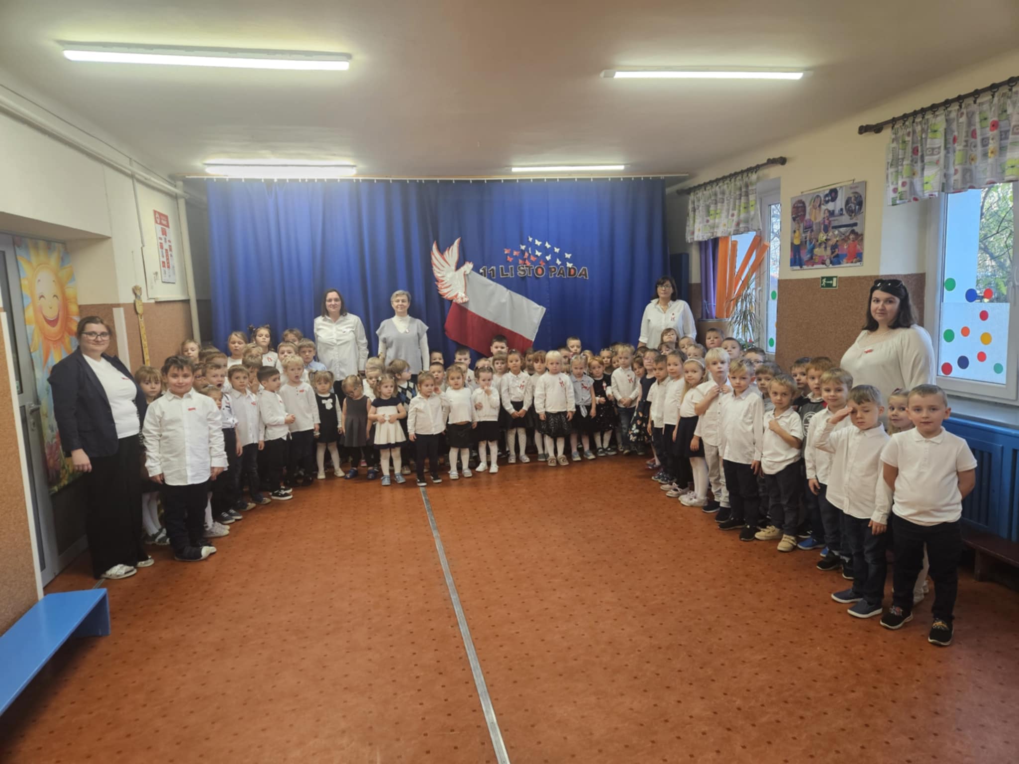 Dzisiaj w przedszkolu uroczyście obchodziliśmy Narodowe Święto Niepodległości. W ramach ogólnopolskiej akcji „Szkoła do Hymnu” przedszkolaki wraz z nauczycielami wspólnie odśpiewały Mazurek Dąbrowskiego w pełnej powagi, właściwej postawie. Dzieci z ogromnym zaangażowaniem włączyły się w to ważne wydarzenie, okazując szacunek symbolom narodowym. Był to dla nich piękny moment budowania postaw patriotycznych oraz wspólnoty. Dzisiejszy dzień na długo pozostanie w naszej pamięci jako wyjątkowa lekcja historii i polskości.