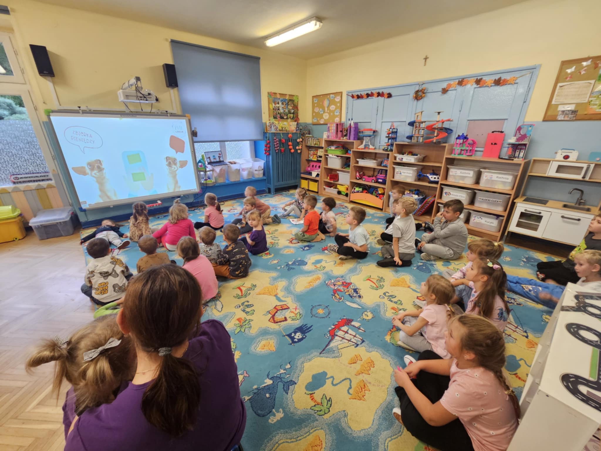 Grupa Słoneczka wzięła udział w wyjątkowych zajęciach edukacyjnych – „Lekcji psiej”. Dzieci dowiedziały się, jak właściwie opiekować się psami i jak bezpiecznie się z nimi obchodzić. Wspólnie oglądaliśmy filmy edukacyjne pokazujące, jak rozumieć zachowania czworonogów, jak reagować w różnych sytuacjach i jak okazywać im szacunek oraz troskę.